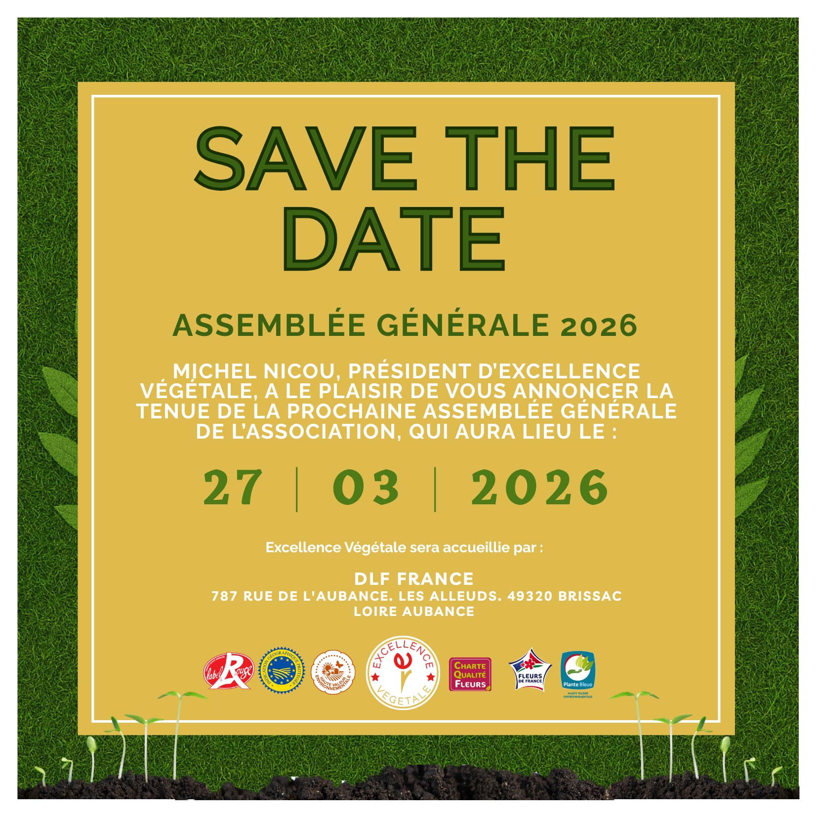 Excellence Végétale est heureuse d’annoncer la date de sa prochaine Assemblée Générale, qui se tiendra le vendredi 27 mars 2026 chez DLF France aux Alleuds (49).